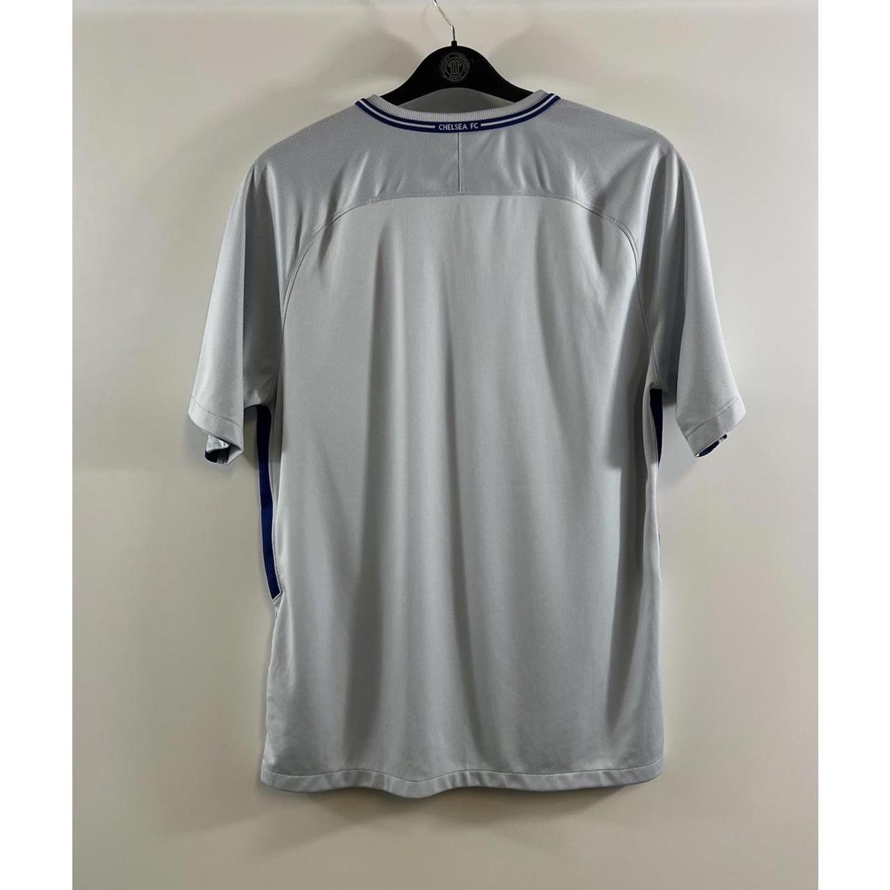 Chelsea Away Football Shirt 2017/18 Adults Large Nike I386 Chelsea Away Football Shirt 2017/18 Adults Large Nike I386 Away Shirt – official Nike team product Away shirt as worn when the champions slumped to a 5th place finish in the Premier League. However, they overcame Manchester United in the FA Cup final with a 1-0 victory to overturn the clubs disappointing season. 2017/18 Size Adults Large Pit to pit 21 inches Collar to hem 30 inches Very Good Condition (see pictures) Postage: All products are shipped double bagged in durable waterproof plastic envelopes