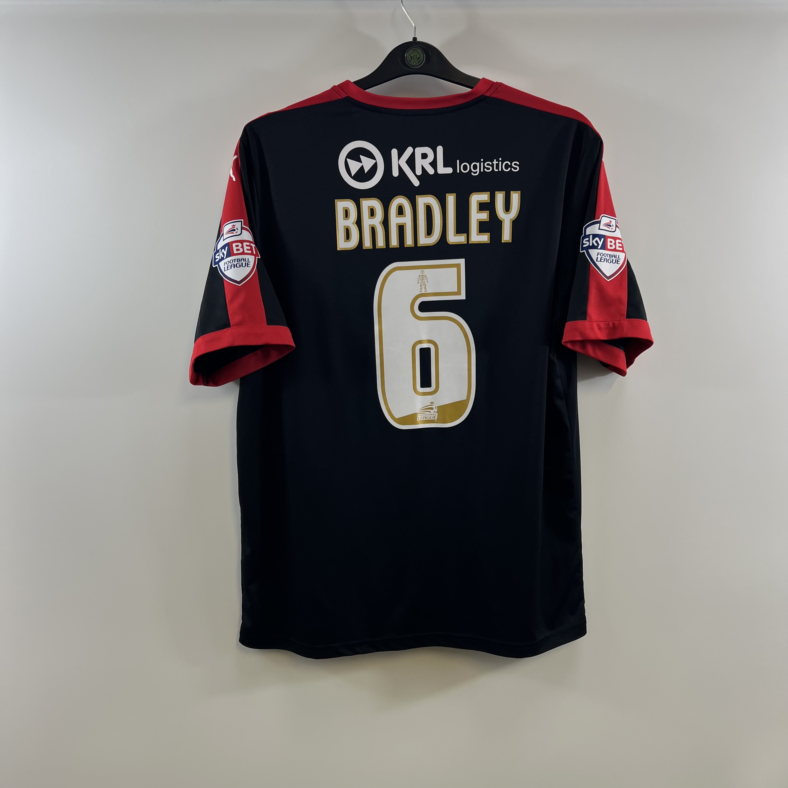 Official Sonny Bradley #6 player print, sky bet sleeve patches.