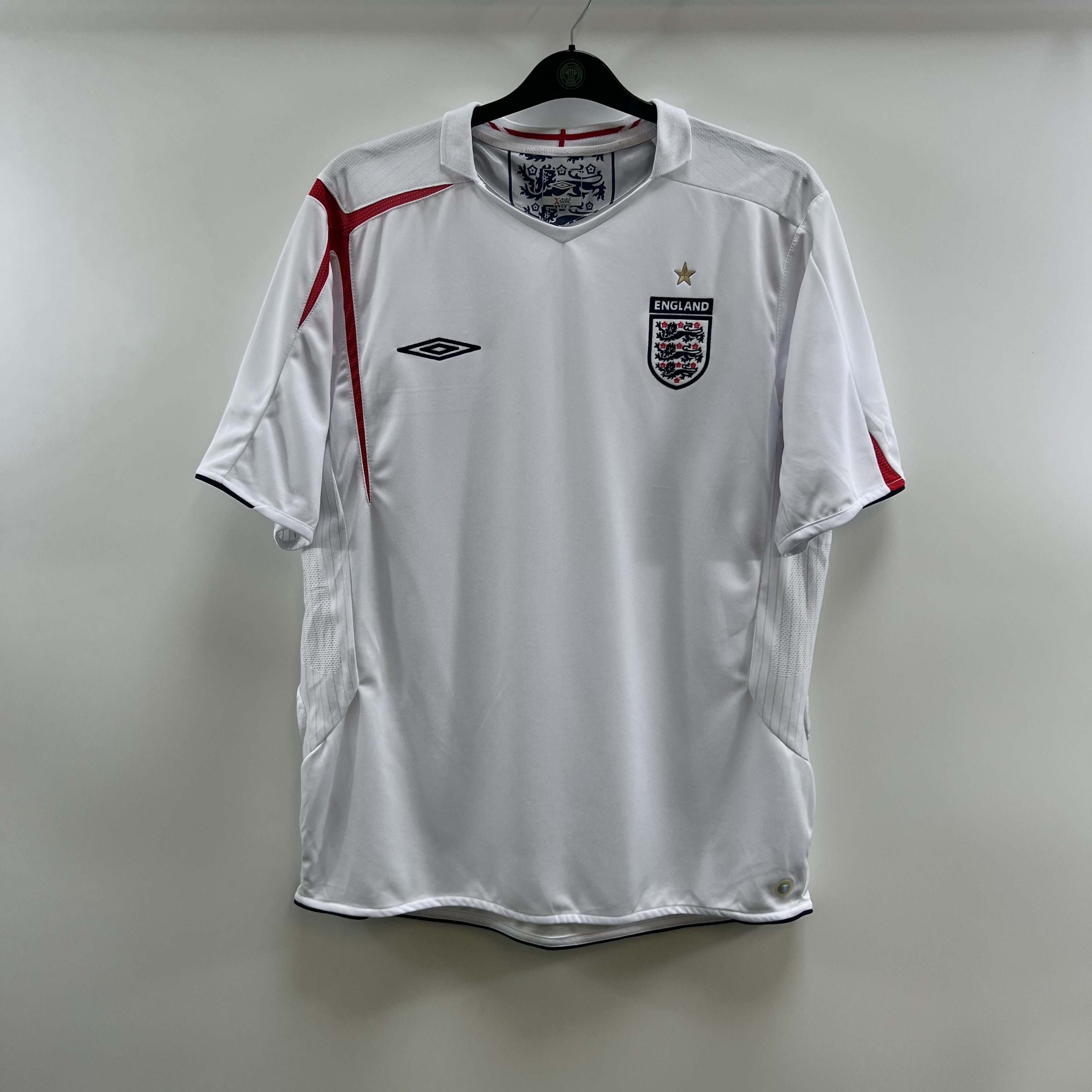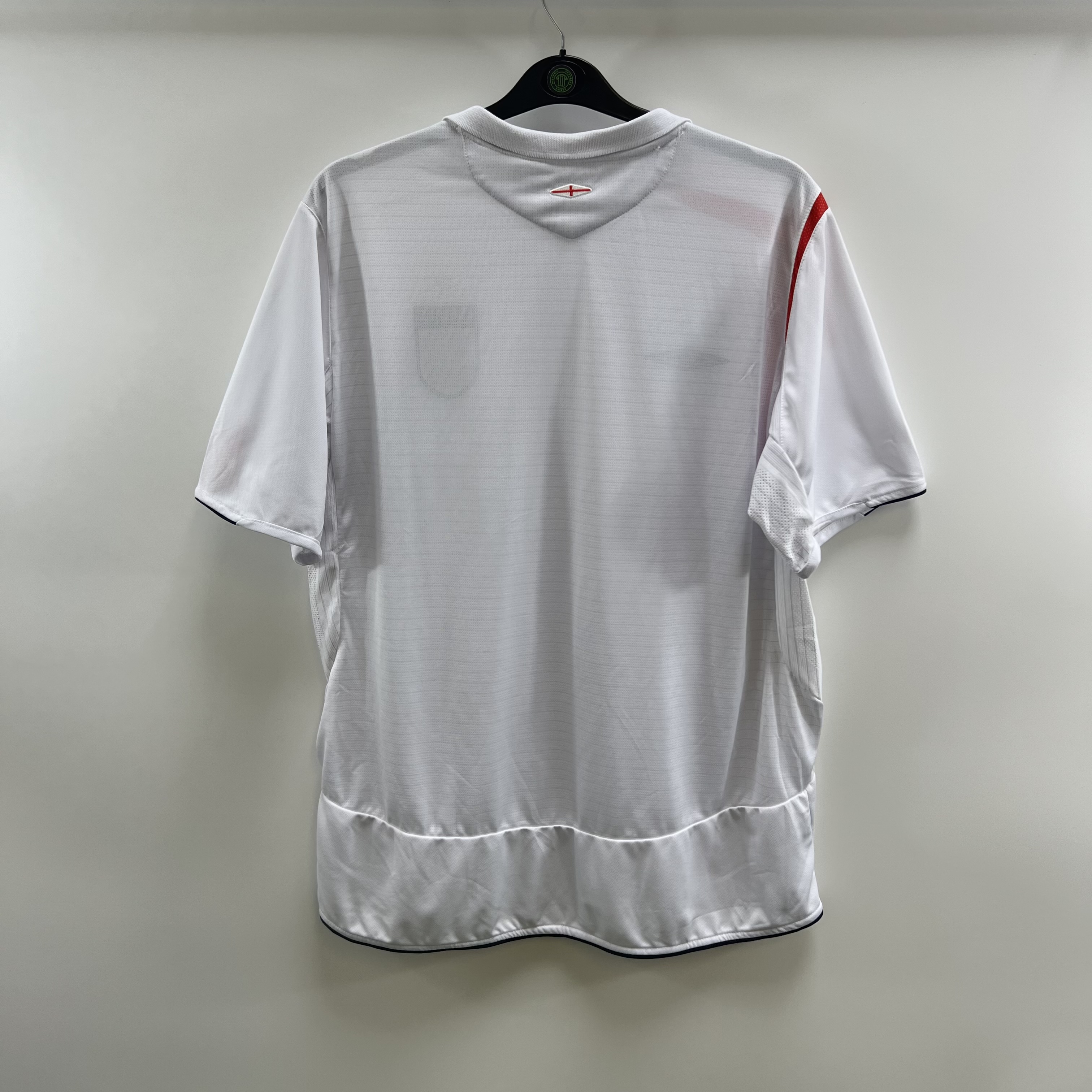 Home shirt as worn in qualification for the 2006 World Cup where England reached the Quarter Finals before being beaten by Portugal on penalties.