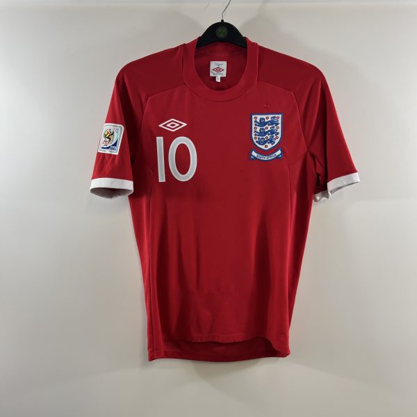 Wayne Rooney #10 officially printed to reverse small #10 to front, South Africa printed scroll below crest. Official South Africa World Cup sleeve patch.