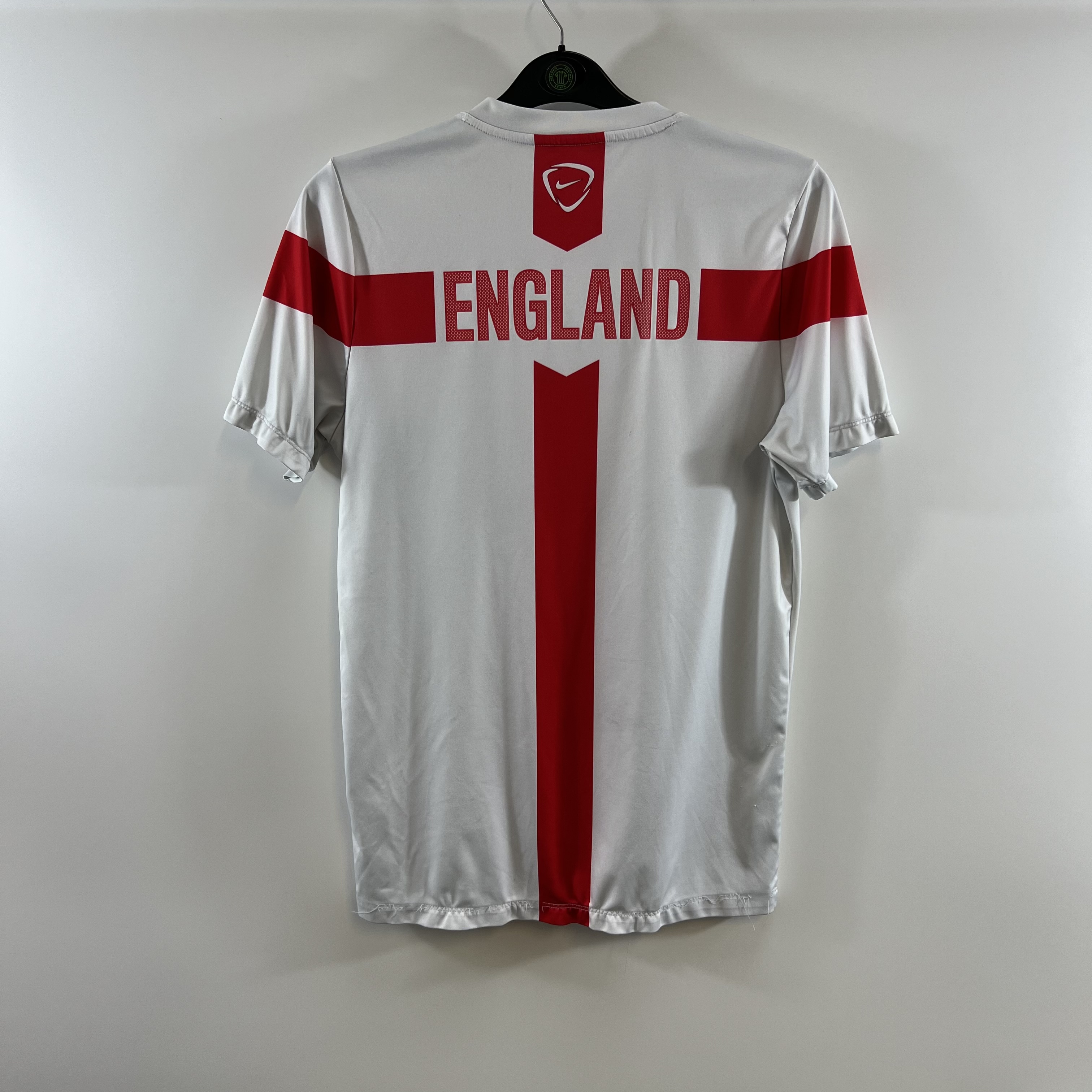 Training shirt as worn in the 2014 World Cup in Brazil with England falling short of expectations in the competition, failing to make it out of the group stages only managing to accumulate 1 point in a 1-1 draw against Costa Rica, who had already qualified for the knockout stages, after losses against Italy and Uruguay.