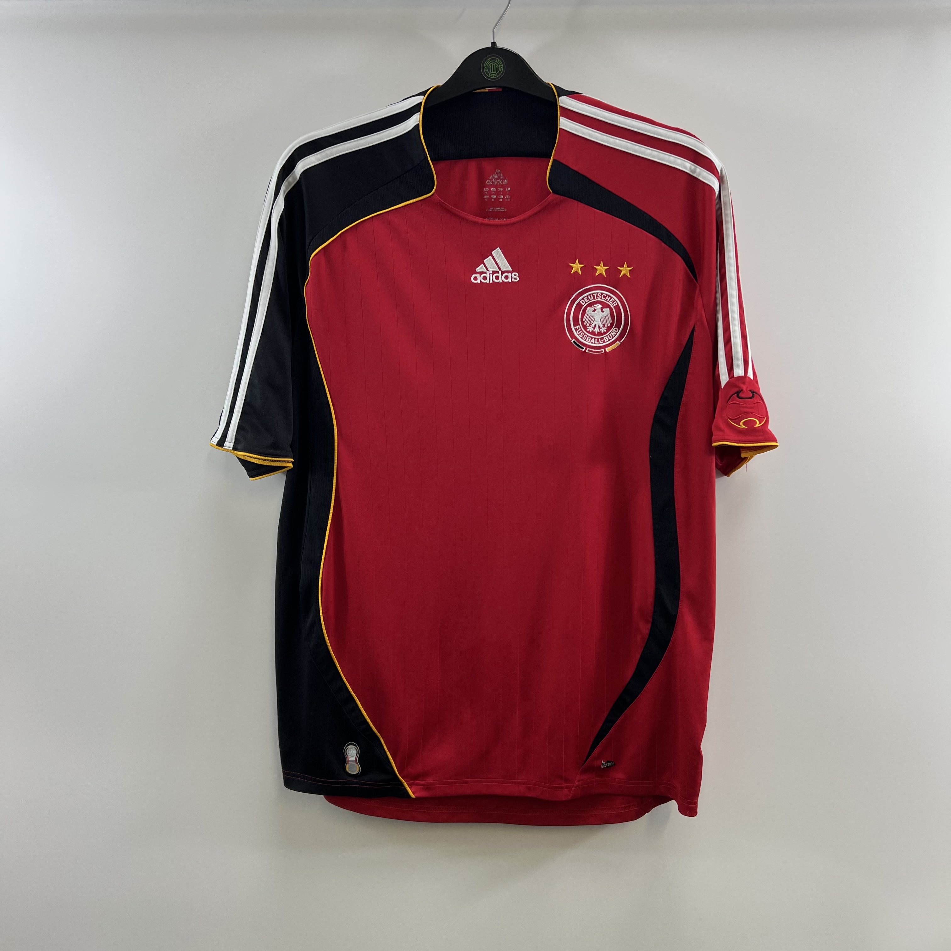 Away shirt as worn when the side hosted the 2006 World Cup and reached the semi finals only to be knocked out by Italy with 2 goals in the last minutes of extra time. The tournament got off to a great start with this spectacular goal from Philipp Lahm.