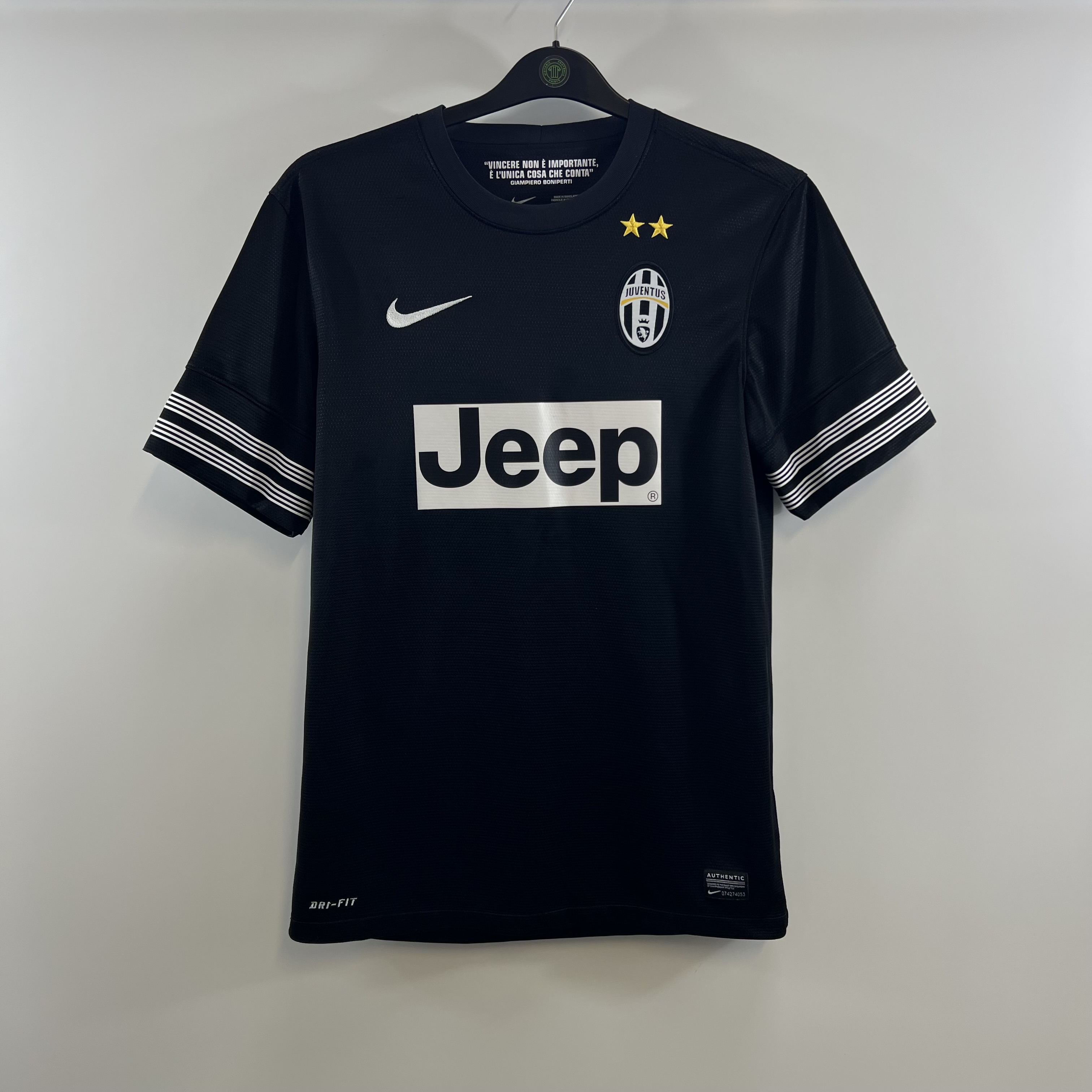 Away shirt as worn when Juventus finished as champions of Serie A, finishing 9 points ahead of second placed Napoli, and were knocked out in the semi finals of the Coppa Italia, losing 3-2 on aggregate against Lazio. Also worn when Juventus were knocked out in the quarter finals of the Champions League, losing 4-0 on aggregate against Bayern Munich.