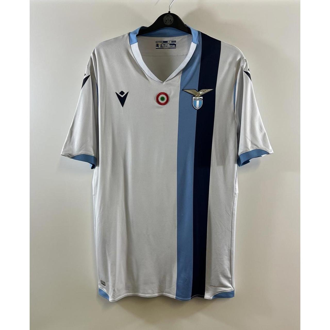Lazio Away Football Shirt 2019/20 Adults XXL Macron H715 Lazio Away Football Shirt 2019/20 Adults XXL Macron H715 Away Shirt – official Macron team product Away shirt as worn when Lazio finished 4th place in Serie A under Simone Inzaghi. However, Lazio did not finish the season empty-handed, finishing as champions of the Supercoppa Italiana beating Juventus 3-1. Ciro Immobile picked up the Golden boot for the first time , with an impressive 36 goals for the season. 2019/20 Adults XXXL Pit to pit 23 inches Collar to hem 34 inches Very Good Condition (see pictures) Postage: All products are shipped double bagged in durable waterproof plastic envelopes