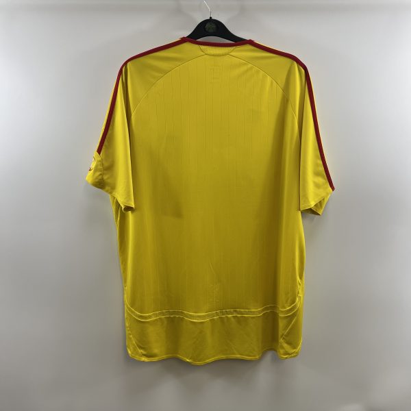 Away shirt as worn when Liverpool finished 3rd in the Premier League and were knocked out in the third round of the FA Cup, failing to defend the title after losing 3-1 against Arsenal. Also worn when Liverpool made it to the final of the Champions League, losing 2-1 against AC Milan with Filippo Inzaghi scoring a brace before Dirk Kuyt scored an 89th minute consolation goal.