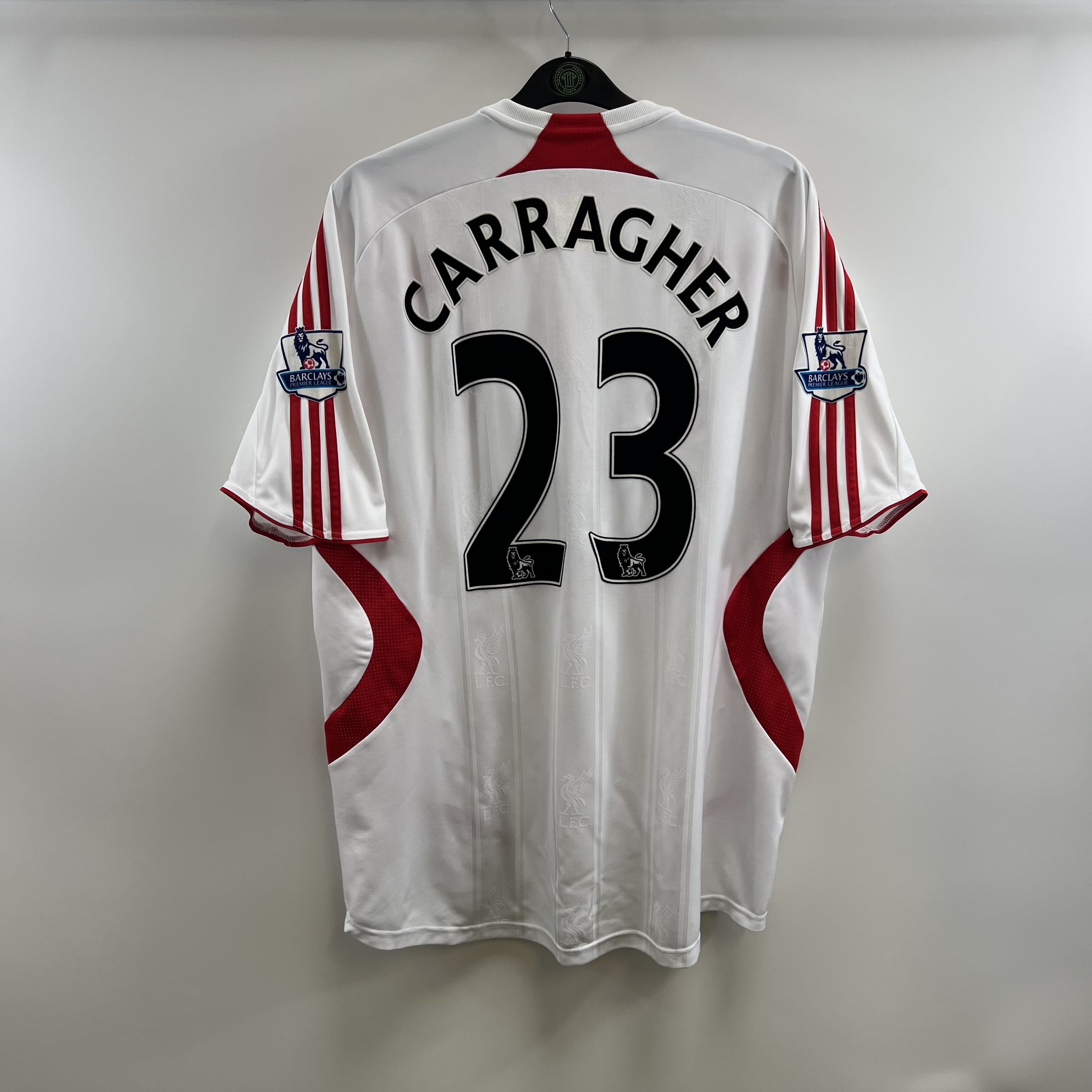 Jamie Carragher #23 official print to reverse, official premier league sleeve patches.
