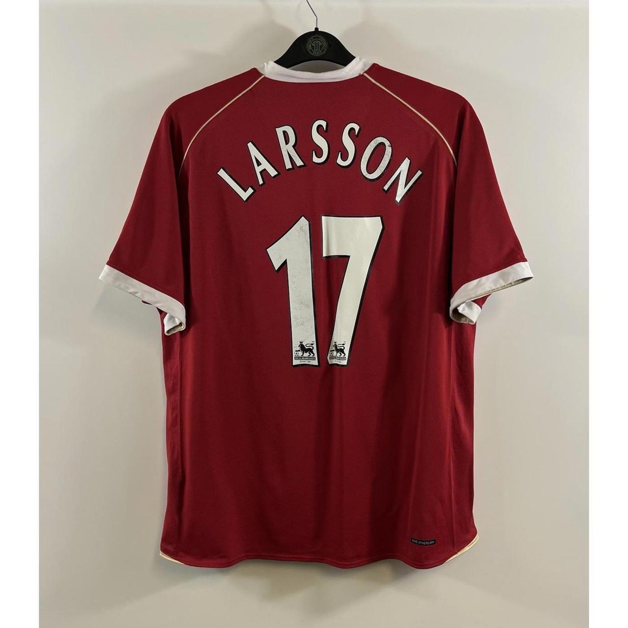Manchester United Larsson 17 Home Football Shirt 2006/07 Adults Large Nike C383 Manchester United Larsson 17 Home Football Shirt 2006/07 Adults Large Nike C383 Home Shirt – official Nike team product Henrik Larsson #17 official print to reverse. The 2006 Manchester United home shirt was a limited edition, one year only design, a 1950’s retro design as a tribute to the success of the Busby Babes. Worn in the successful 2006-07 season where they finished the season as Premiership Champions. 2006/07 Size Adults Large Pit to pit 21.5 inches Collar to hem 31 inches Very Good Condition slight wear to nameset(see pictures) Postage: All products are shipped in durable waterproof plastic envelopes