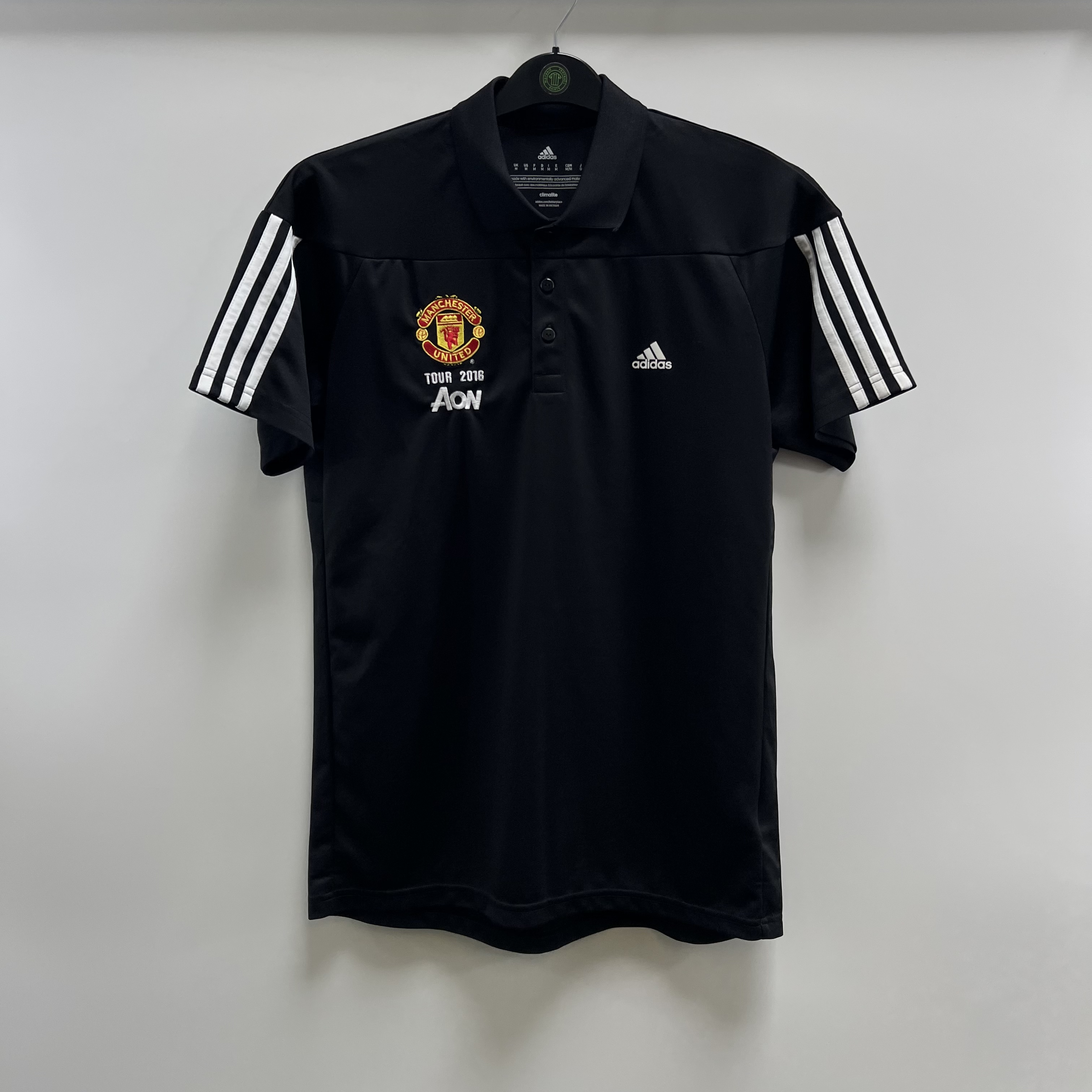 Polo shirt worn as Jose Mourinho took over the reigns at Old Trafford with high expectations following the World record transfer of French international and former youth team product Paul Pogba but would eventually settle for a League Cup and Europa League double, the latter triumph meaning United have now won every trophy available.
