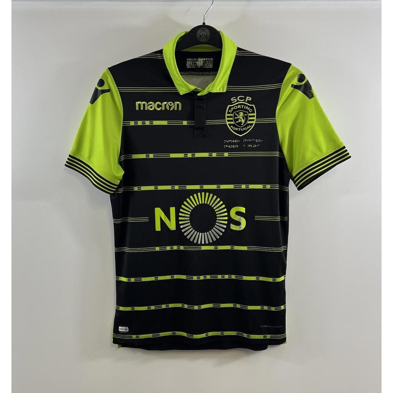 Sporting Lisbon Away Football Shirt 2017/18 Adults Small Macron I373 Sporting Lisbon Away Football Shirt 2017/18 Adults Small Macron I373 Away Shirt – official Macron team product The 2017-18 campaign was a season of spectacular attacking prowess and cup glory for Sporting CP, with Os Leões finishing 3rd in the Primeira Liga and winning the Taça da Liga. Spearheading the charge was the clinical Bas Dost, whose incredible 34 goals across all competitions, including a league-best 27, was brilliantly complemented by the emergence of new star Bruno Fernandes, making it a thrilling, yet ultimately tumultuous, chapter in the club’s modern history that also saw them reach the Europa League Quarter-finals. 2017/18 Adults Small Pit to pit 19 inches Collar to hem 29 inches Good Condition some wear to sponsors (see pictures) Postage: All products are shipped in durable waterproof plastic envelopes