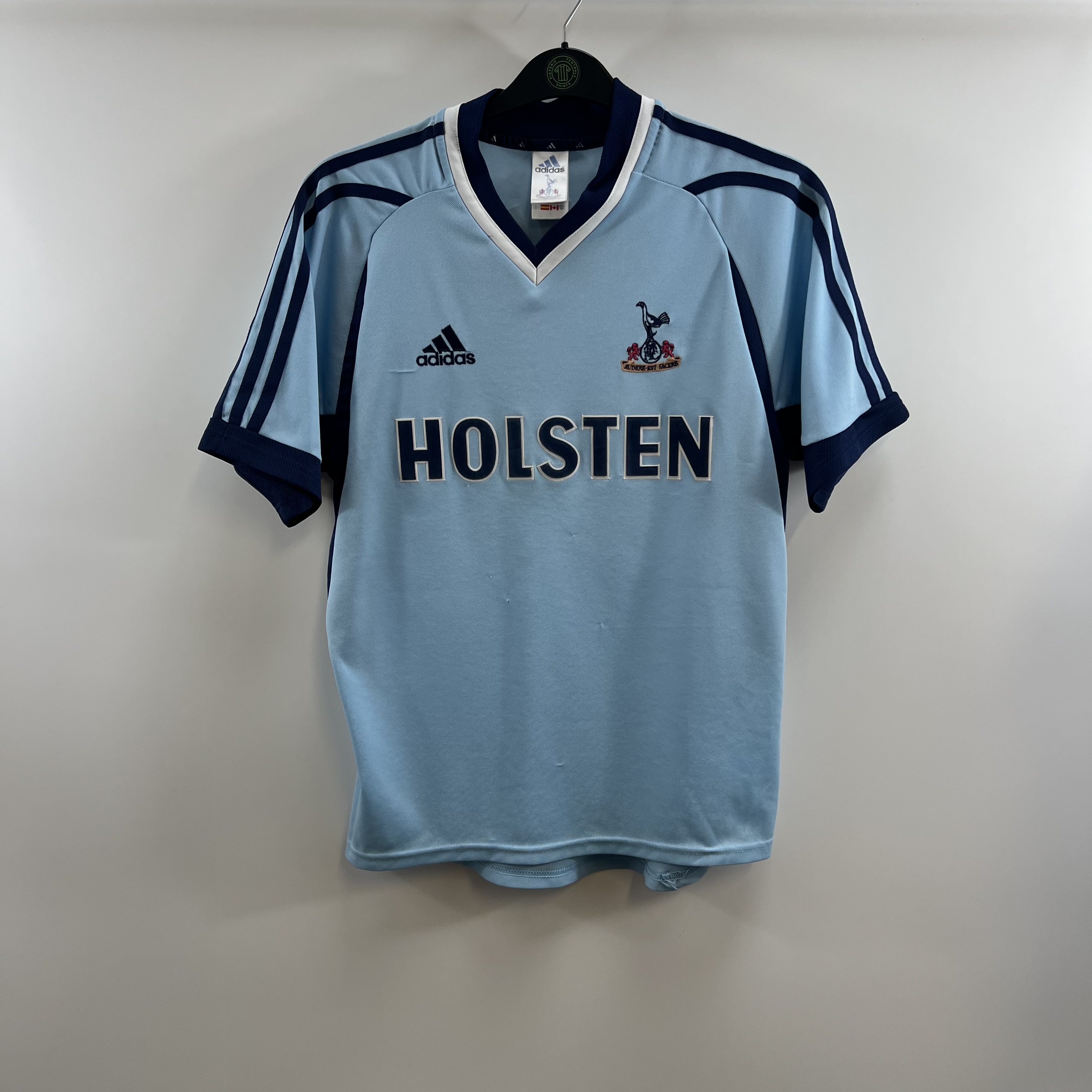 Away shirt as worn in Glenn Hoddle’s first full season back at the helm at White Hart Lane. Hoddle led the side to a League Cup final thanks to a 5-1 second leg victory over bitter rivals Chelsea. Spurs failed to lift the Worthington Cup with Blackburn’s Matt Jansen and Andy Cole scoring either side of Christian Ziege’s goal to take the crown back to Lancashire. In the league, Spurs’ patchy form prevented them from mounting a serious challenge for a European place as they finished 9th.